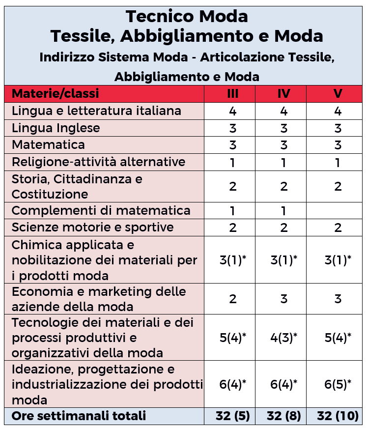 Il perito tecnico nell'indirizzo Tessile, Abbigliamento e Moda sviluppa competenze specifiche per operare nei diversi contesti delle numerosissime realtà produttive del Sistema Moda italiano, nell’ambito dell’ideazione, progettazione, produzione, marketing.